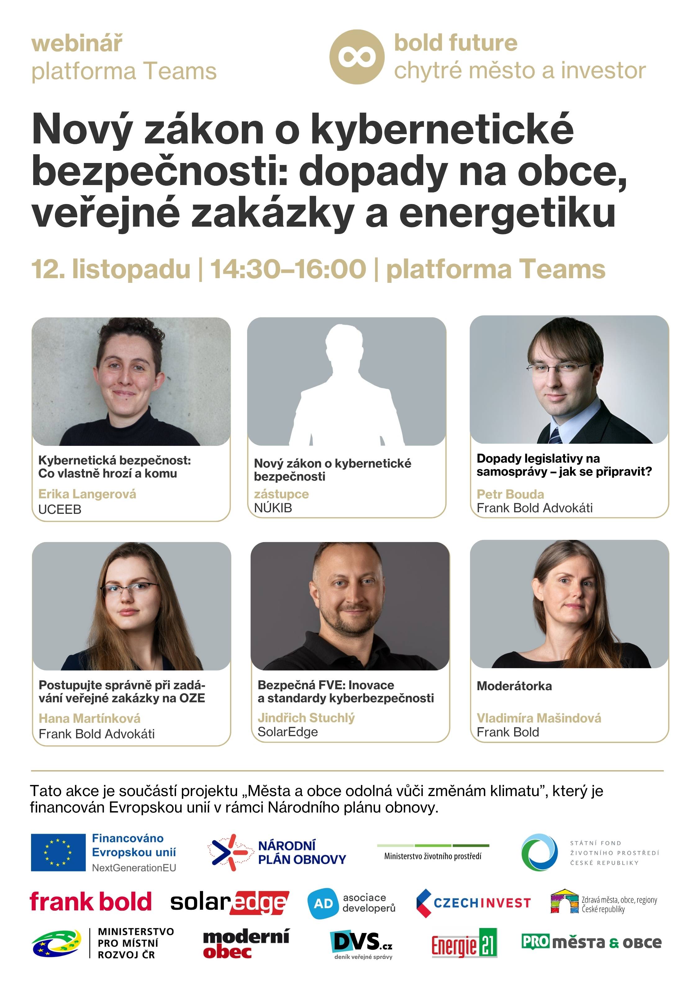 Připojte se 12. listopadu od 14:30 na webinář platformy Chytré město a investor, kde odborníci představí novou legislativu se zaměřením na obce, vysvětlí souvislosti s vypisováním veřejných zakázek a vazbu na projekty v oblasti komunitní energetiky.