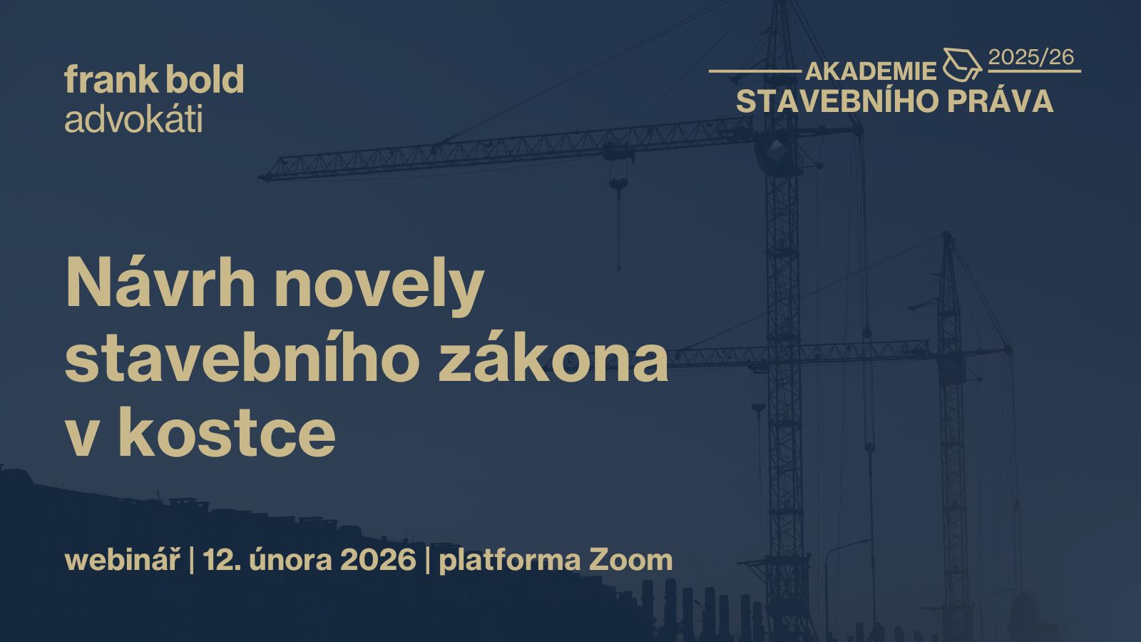 Ve Frank Bold Advokáti se budeme jednotlivým tématům průběžně věnovat více do hloubky a informovat Vás o dalším vývoji. Připravujeme také webináře a praktická školení. Nechcete nic minout, přihlaste s k odběru našeho newsletteru pro obce nebo pro stavebnictví nebo se registrujte na náš Webinář 12. února od 10 hodin: Návrh novely stavebního zákona v kostce.