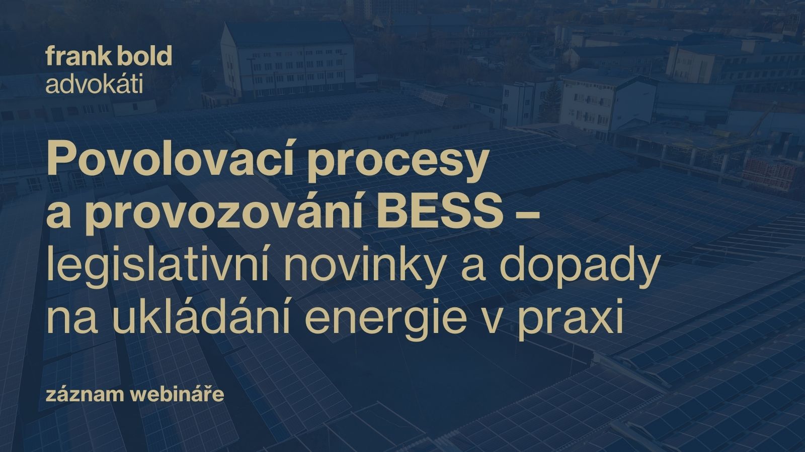 Ve Frank Bold Advokáti jsme proto připravili praktický webinář, abychom vám pomohli se v novinkách zorientovat. Kupte si záznam a dozvíte se, jak zařízení pro ukládání povolit, připojit k síti a provozovat v souladu s energetickými předpisy nebo jaké změny nastaly v oblasti poplatků a plateb spojených s provozem BESS.