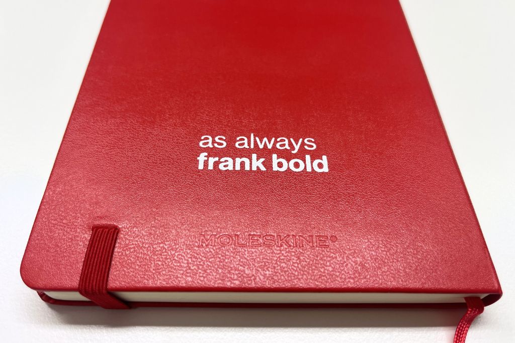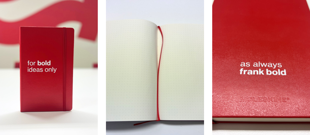 Pořiďte si stylový zápisník značky Moleskine a získejte místo, kde mohou vaše nápady růst. Ve Frank Bold jsme vyrobili limitovanou edici zápisníků, které ladí s naším brandem i filozofií.